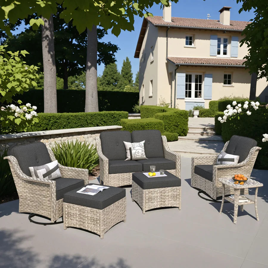 Outdoor 6 Pieces Coversation Set with Swivel Rocking Chair