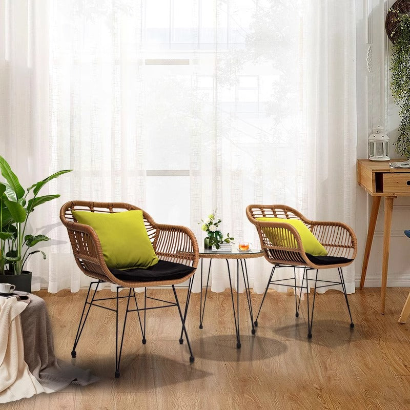 Outdoor Balcony Table and Chair Set Three-Piece Garden Lounge Set Recliner Chair with Small Backrest Nordic-Style Handcrafted Rattan Chair