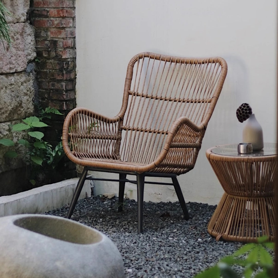 Balcony, outdoor tea table, chair combination, handmade rattan chair, courtyard leisure armchair, homestay, light luxury Nordic style rattan chair