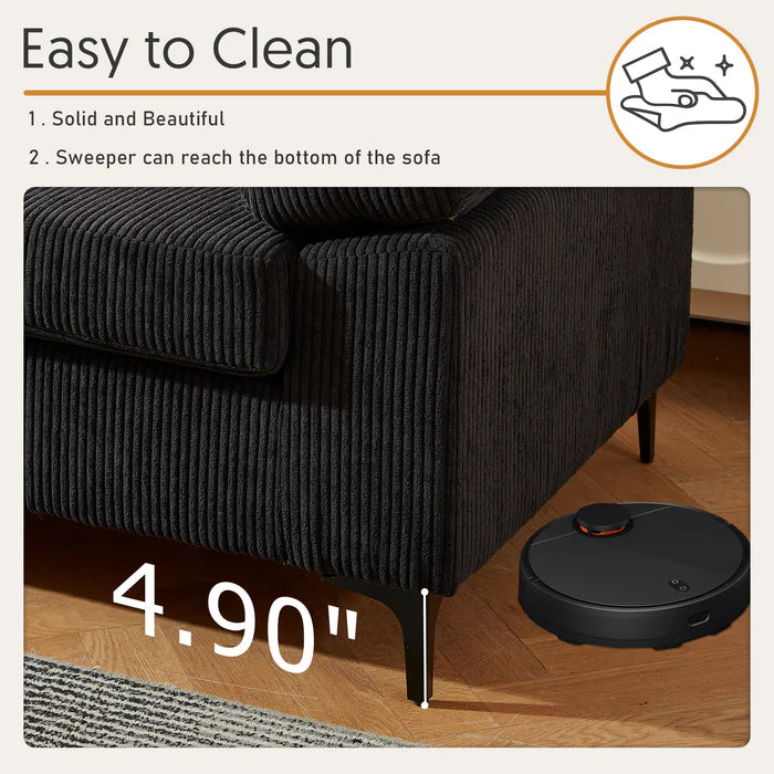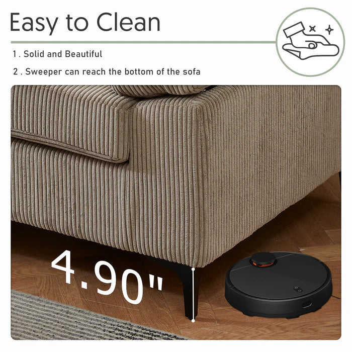Premium Wide-Wale Corduroy for Style and Durability: This sofa is crafted with luxurious wide-wale corduroy, featuring 2.5 distinctive ridges per inch. The bold texture not only adds a unique aesthetic appeal but also offers exceptional durability, making it resistant to wear and wrinkles, while enhancing comfort and style in any living space.