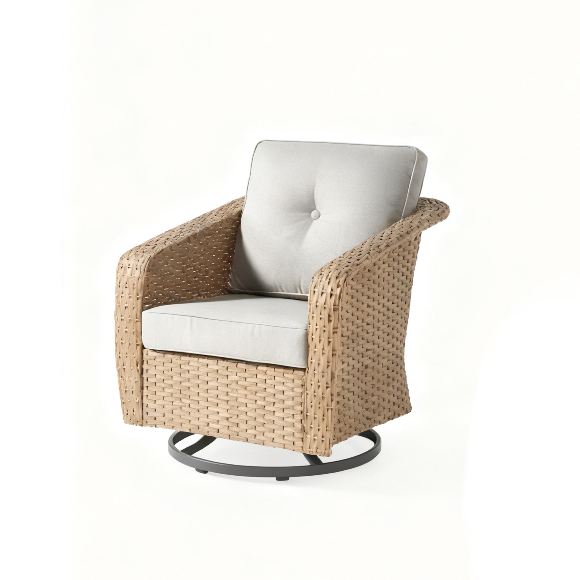 3-Piece Patio Set:Includes 2 swivel chairs and 1 side table. The simple and elegant design combines natural wicker colors with modern elements, easily integrating into various outdoor decoration styles, enhancing the overall beauty of the outdoor scenes, make the outside, porch, terrace, balcony, poolside more eye-catching