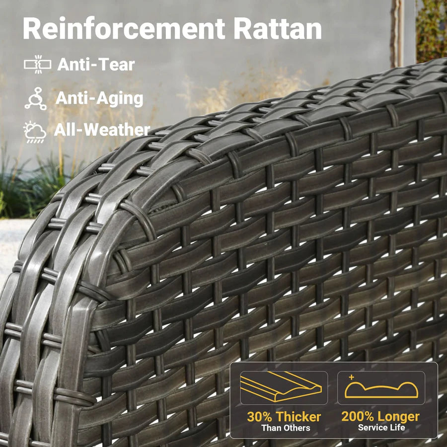 All-weather Wicker Rattan: Our outdoor seating have very durable wicker rattan for all-weather use and a natural texture with good coloring. The high-quality patio chairs made of powder coated steel frame ensures good strength and stability