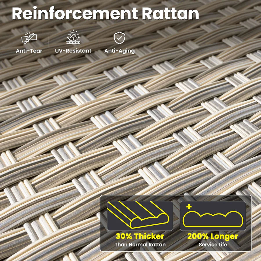 All-weather Wicker Rattan:Our outdoor sofa sets have very durable PE wicker rattan for all-weather use and a natural texture with good coloring. The high-quality patio seating made of powder coated steel frame ensures good strength and stability