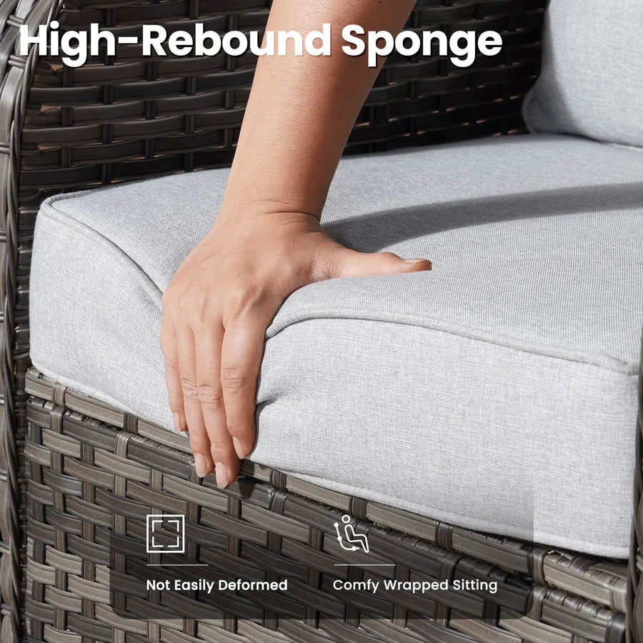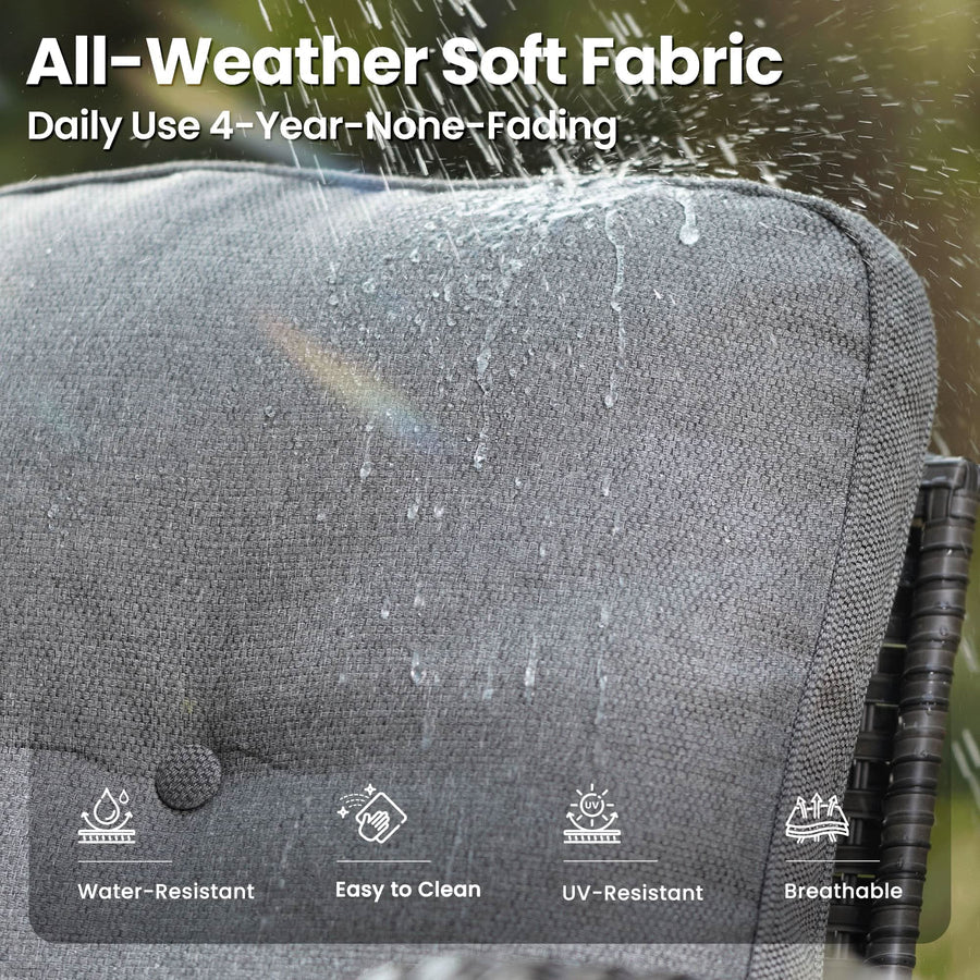 Comfy Thick Cushion: Made of all-weather high-density waterproof coating fabric and upgraded thickened cushions, it has high resilience, good breathability, wear resistance and tear resistance. The cushion cover is zippered and can be removed for washing, and simple and convenient daily maintenance