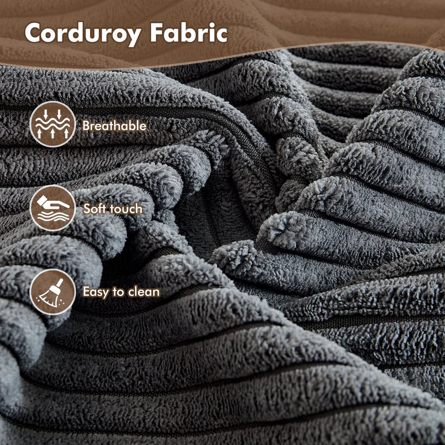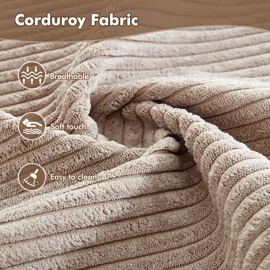 Corduroy Fabric:Provides the ultimate in soft, warm comfort, transforming any space into a cozy haven. This luxurious fabric is crafted for superior insulation, ensuring warmth and comfort throughout the winter months. It is also resilient and stretchy, allowing it to withstand daily wear and tear while retaining its pristine appearance