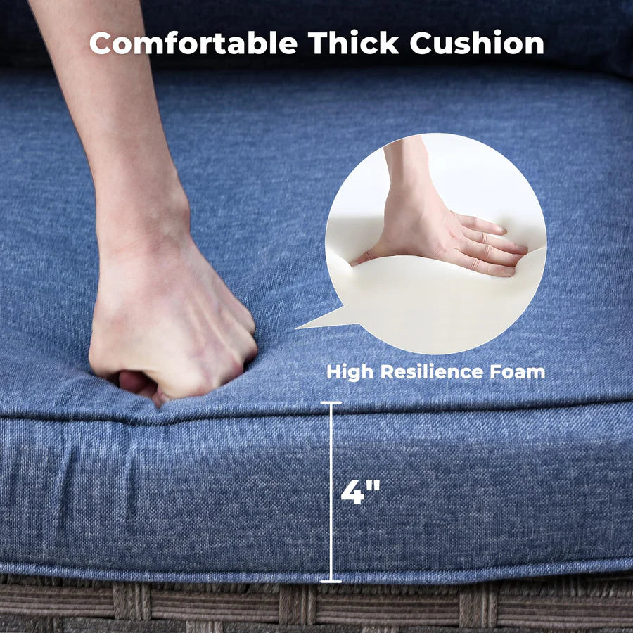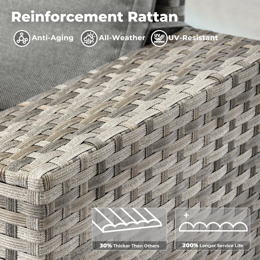 Easy Maintenance: Simplify upkeep with cushion covers featuring smooth zippers for easy removal and washing. Crafted from hand-made weather-resistant PE rattan, this all-weather sectional sofa won't rust or fade.