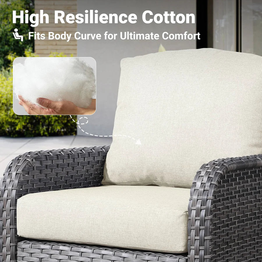 Rocking Swivel Chairs: The fully rotating patio chairs allows you to 360 degrees swivel and 30 degrees rocking smoothly and silently. The unique forward and backward swing design allows you to easily enjoy a comprehensive comfortable experience, whether it's gathering, reading, or relaxing, you can find the most comfortable angle