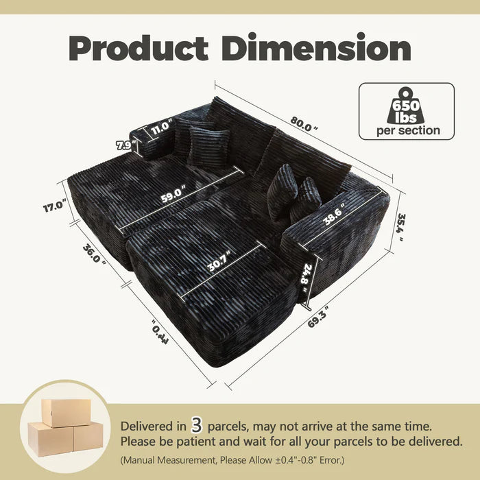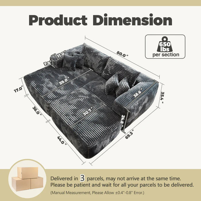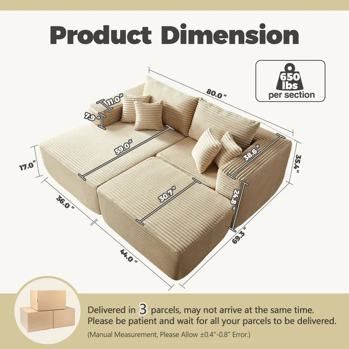 80"Modular Couch with Chaise&Ottoman, Sleeper Sofa, No Assembly Required