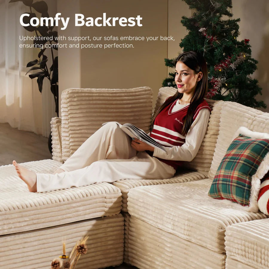 Cloud Plush Corduroy:Exquisite and luxurious plush corduroy fabric offers constant softness and comfort, with its unique cloud-like fluffy texture and luster standing out. Don't worry if your pet likes to paw at the sofa, the plush corduroy fabric is anti-scratch and can easily allow you to remove clumps of hair