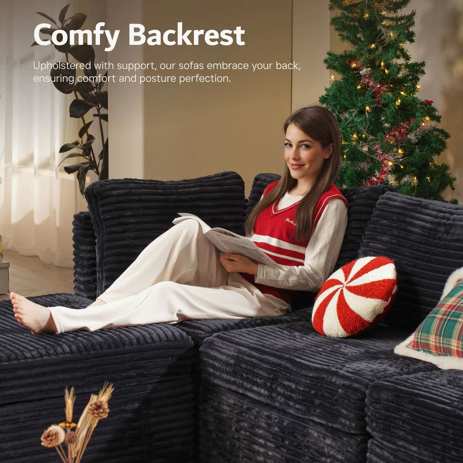 Cloud Plush Corduroy:Exquisite and luxurious plush corduroy fabric offers constant softness and comfort, with its unique cloud-like fluffy texture and luster standing out. Don't worry if your pet likes to paw at the sofa, the plush corduroy fabric is anti-scratch and can easily allow you to remove clumps of hair