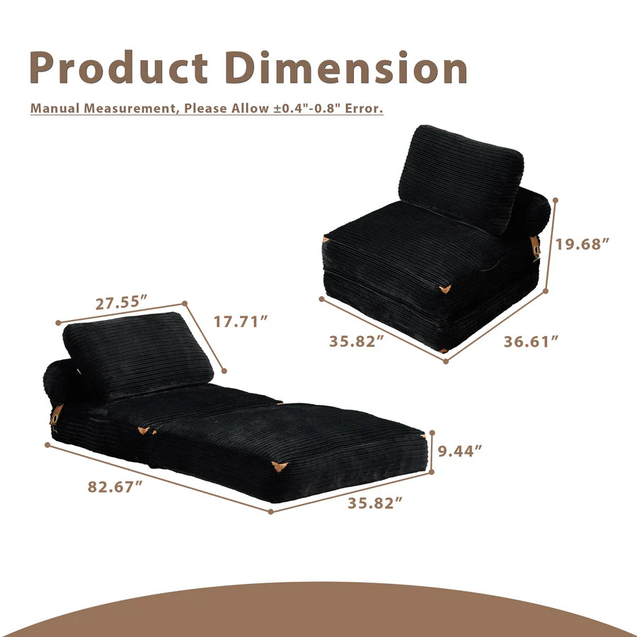 3-in-1 Convertible Design:Effortlessly transforms from a comfy floor chair into a lounge recliner or a cozy guest bed. Perfect for small spaces, apartments, dorms, or anyone who loves multifunctional furniture.