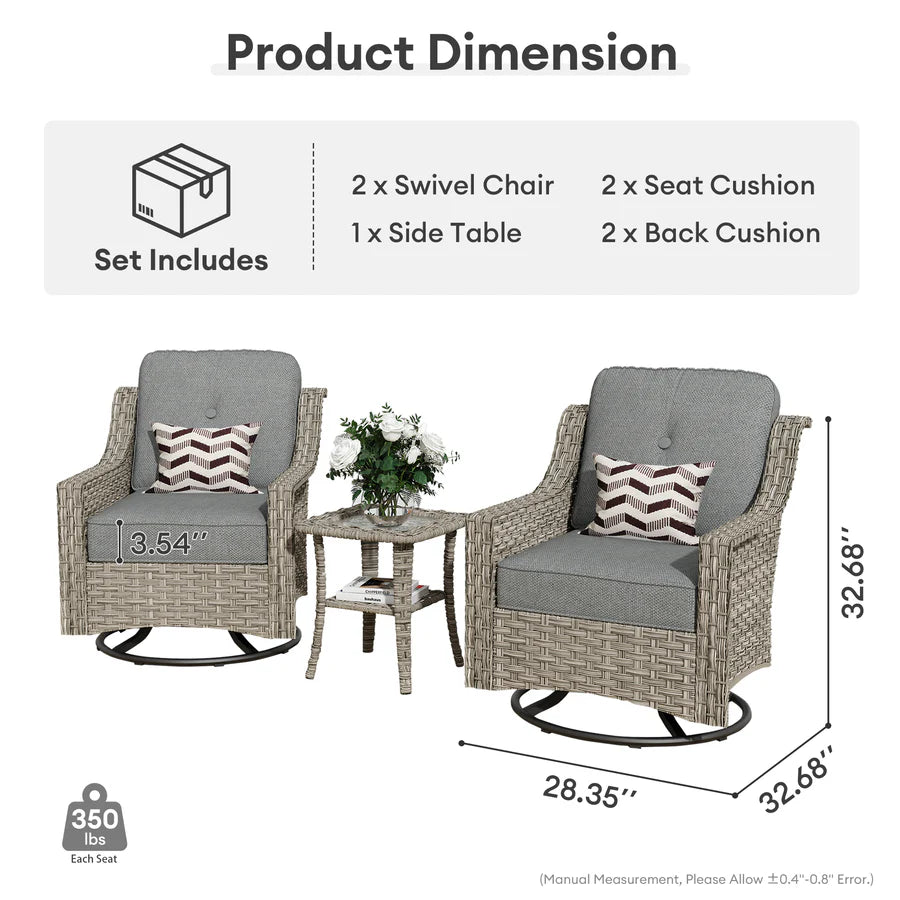 Conversation Set 3-Piece PAD Series,Swivel Chair