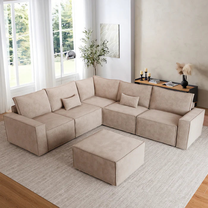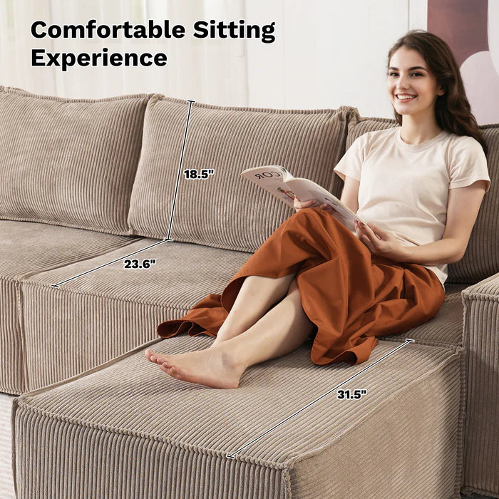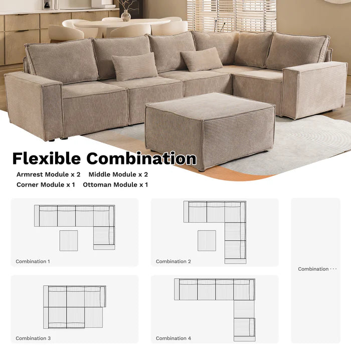 Living Room Modular Couch 6-Pieces Set, 2.5 Wale Corduroy Fabric