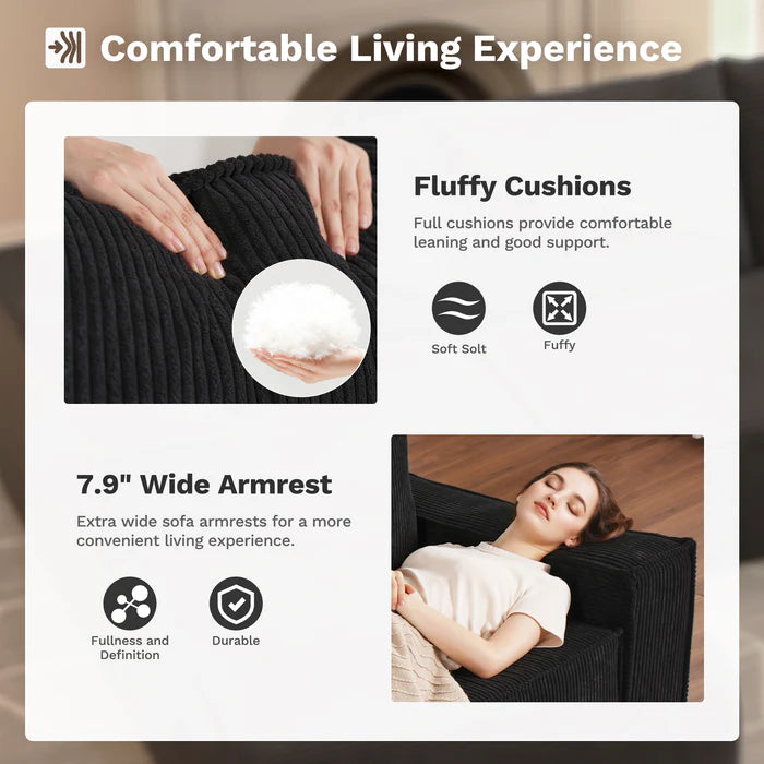 Stylish Corduroy Fabric: Luxurious corduroy upholstery adds warmth and softness, creating a cozy yet modern look that enhances any living space.