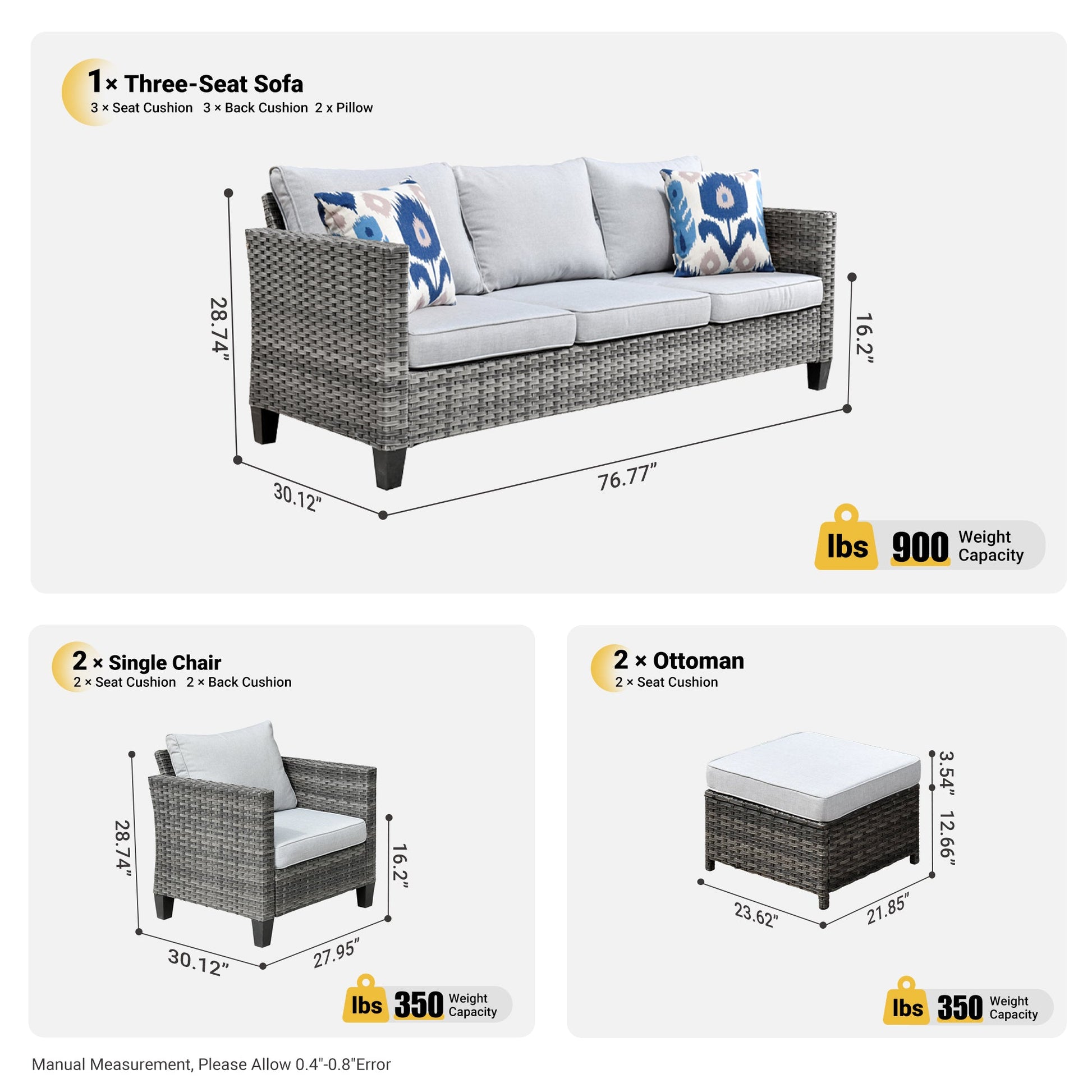 Items Included | 5 PCS include: Sofa*1, Chair*2, Ottoman*2 |