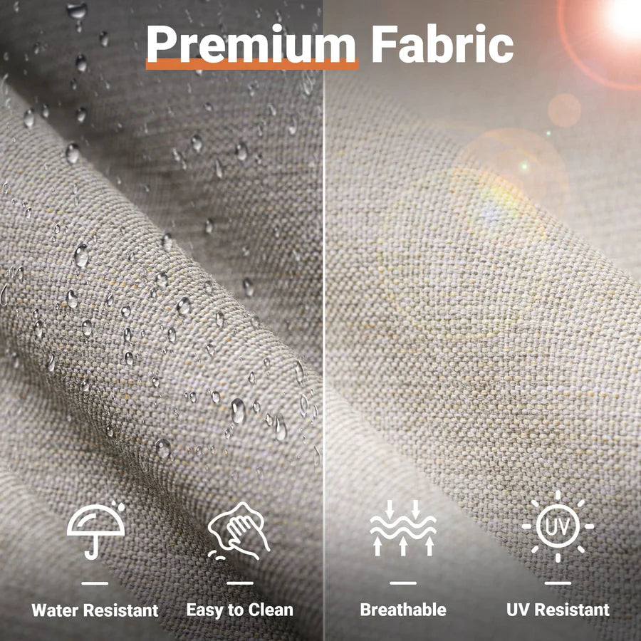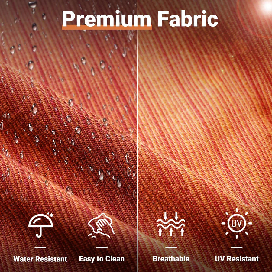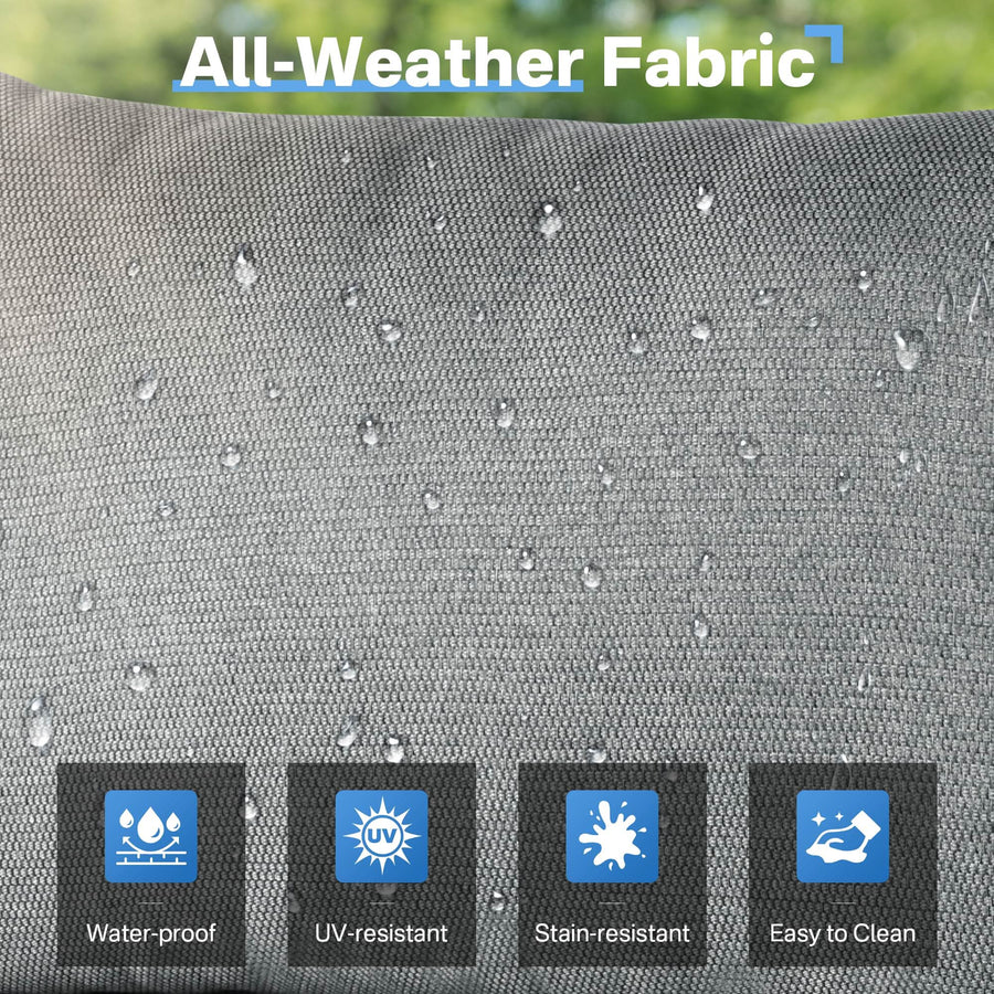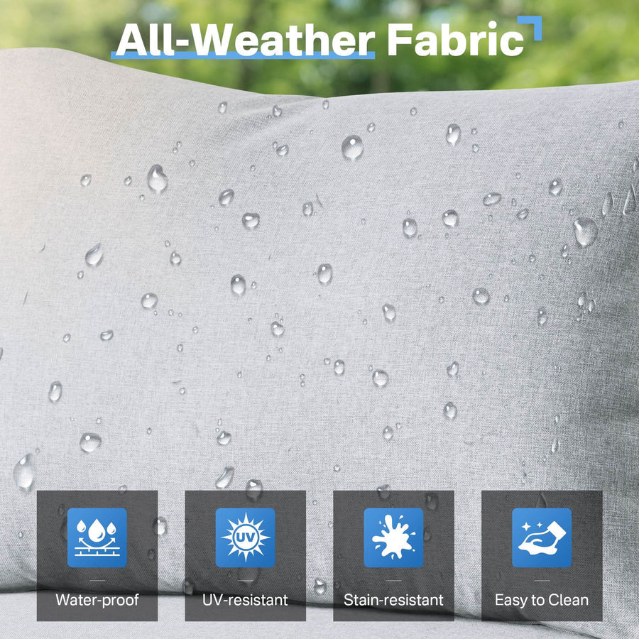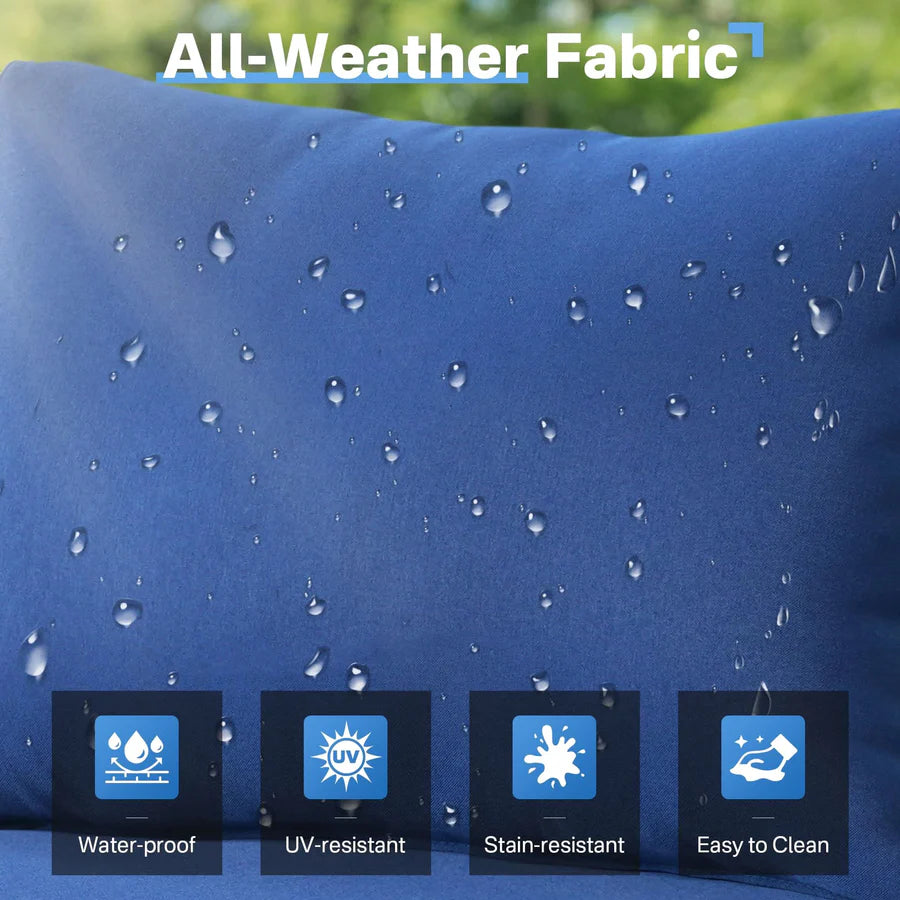 Easy Assembly & Maintain:Assembling this patio furniture set is a breeze with the provided tools. Maintenance is easy thanks to the splash-proof material. The cushion covers can be removed for convenient cleaning, while the glass table top is a snap to clean with just fresh water or a warm soak for tough stains