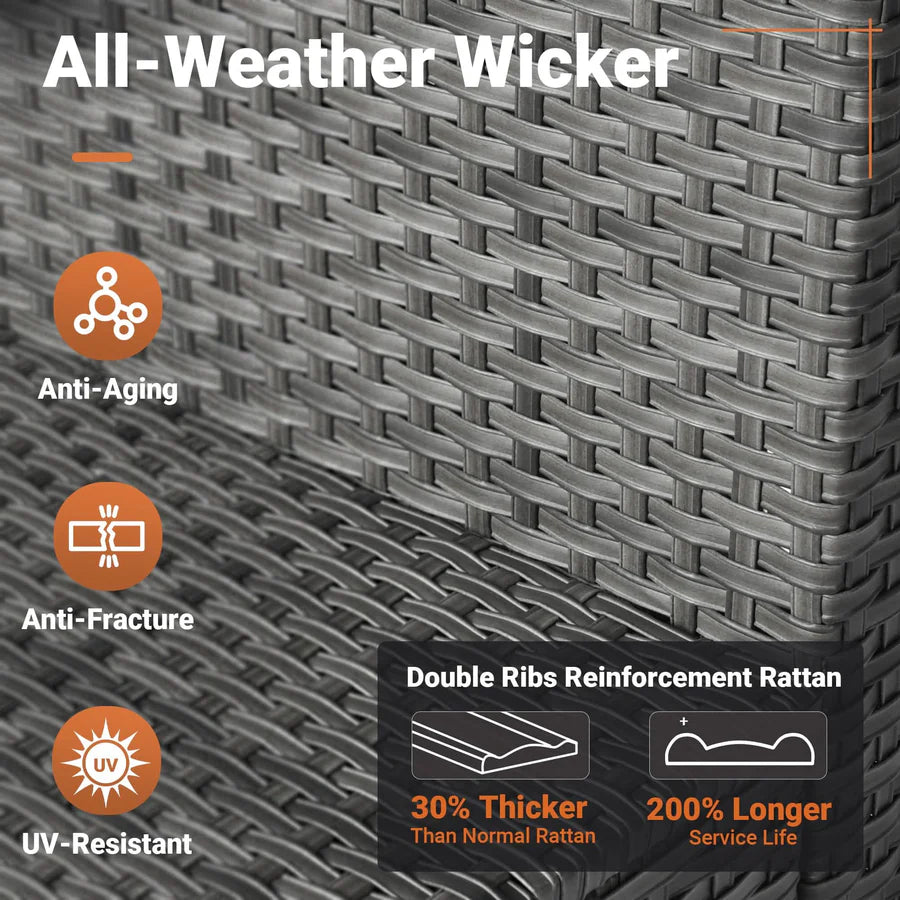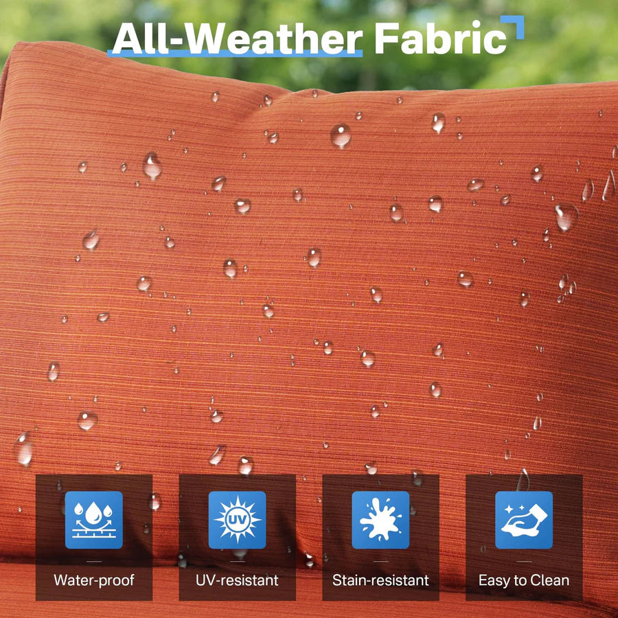 Comfortable Outside Couch:Indulge in maximum comfort with the 3.5" thicken seat cushions and ergonomic backrest in this patio set. Ideal for extended outdoor lounging with family,and take a conversation for your guest long time, offering optimal support for your relaxation needs