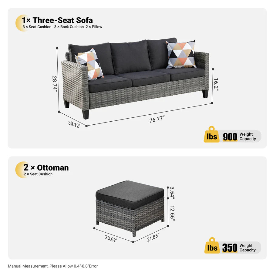Outdoor Couch New Vultros 3-Piece High Back with Ottoman