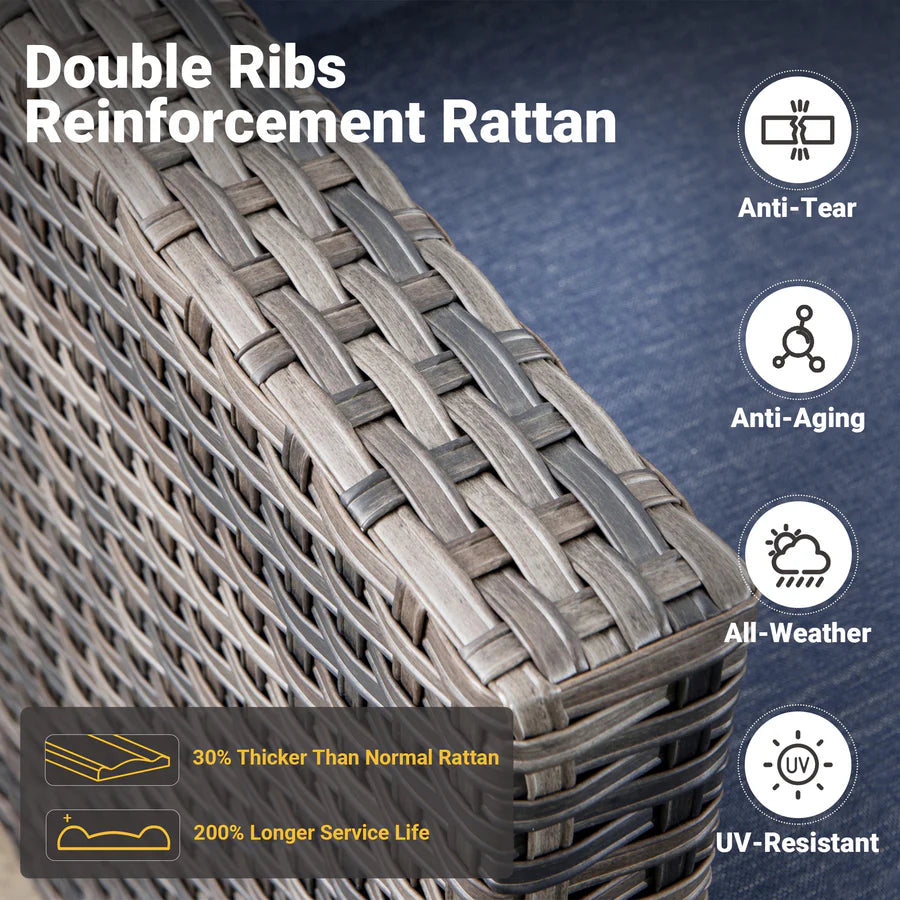 Sturdy & Practical:Indulge in a cozy yet modern experience with spacious armrests and deep seats. Long-lasting wicker guarantees durability, erasing worries of wear over time.