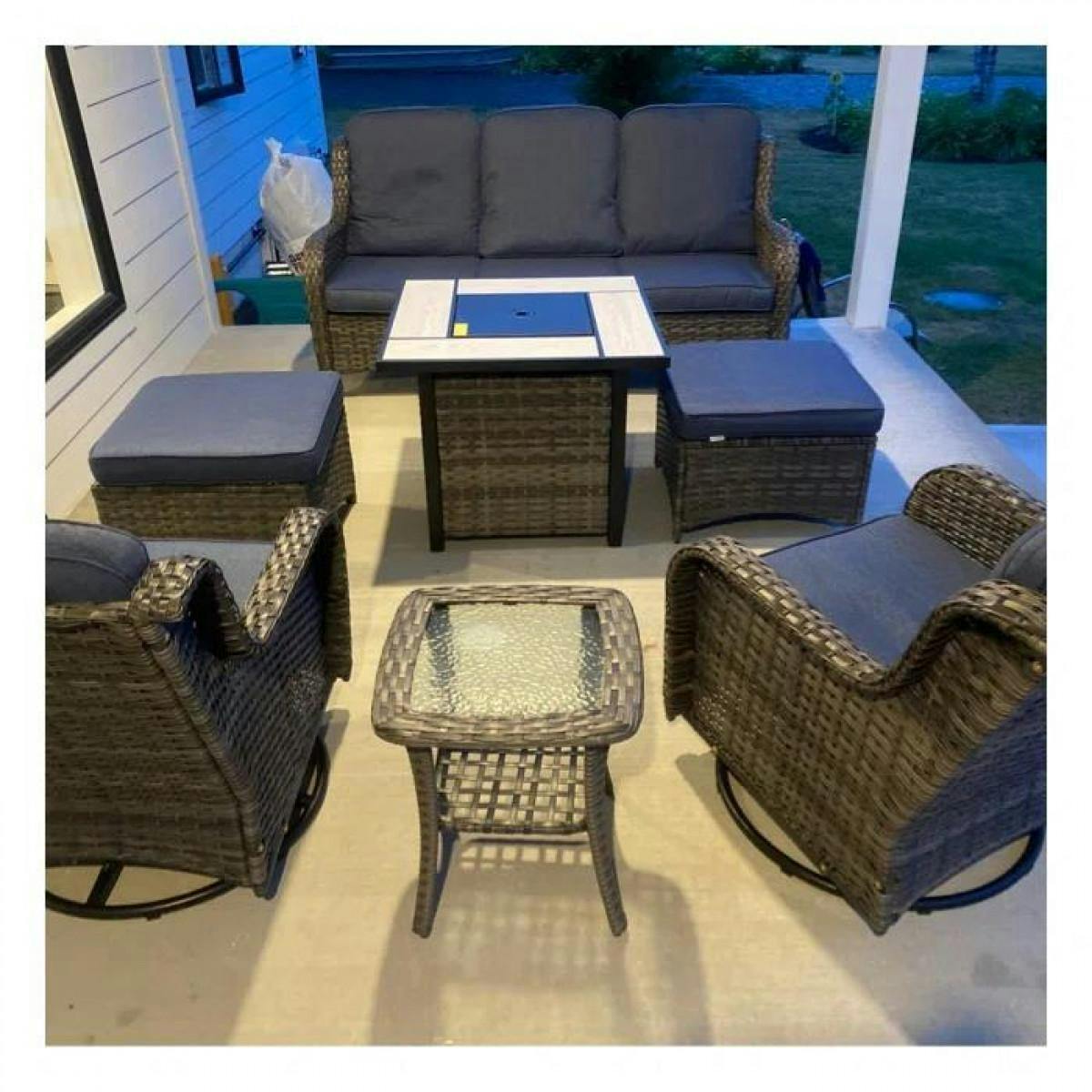 Outdoor Furniture 7-Piece with 30'' Fire Pit Table and Kenard 2 Rocking Chairs