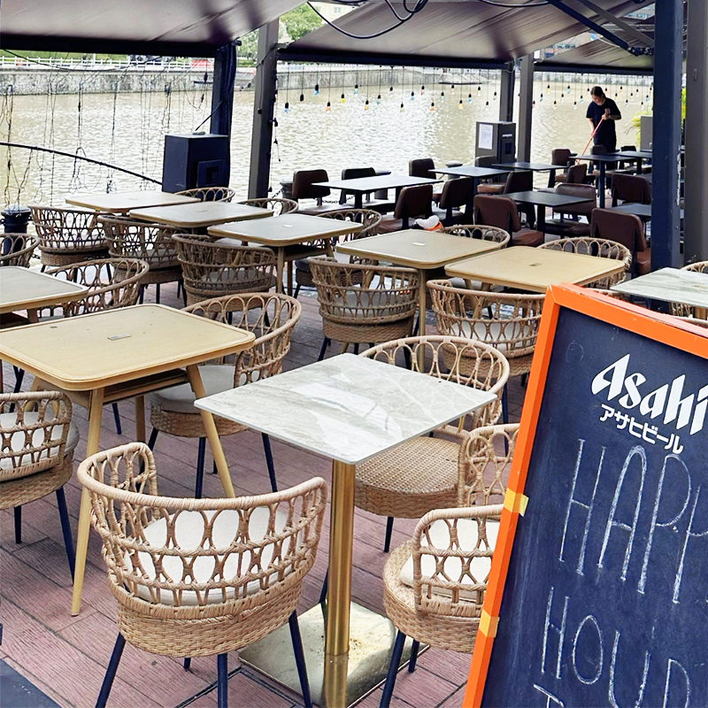 Outdoor Furniture Set: Rattan Lounge Chair with Backrest Trendy Nordic-Style B&B Dining Chair Handcrafted Woven Rattan Dining Chair