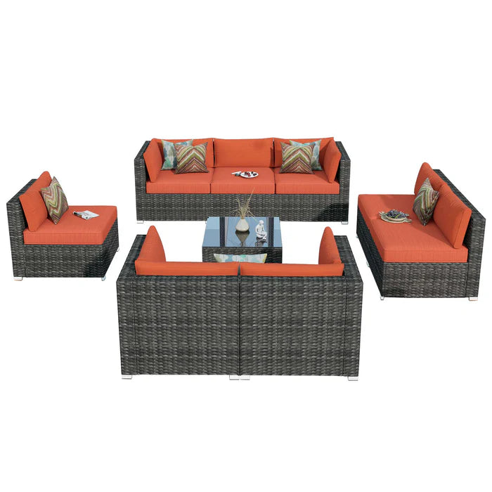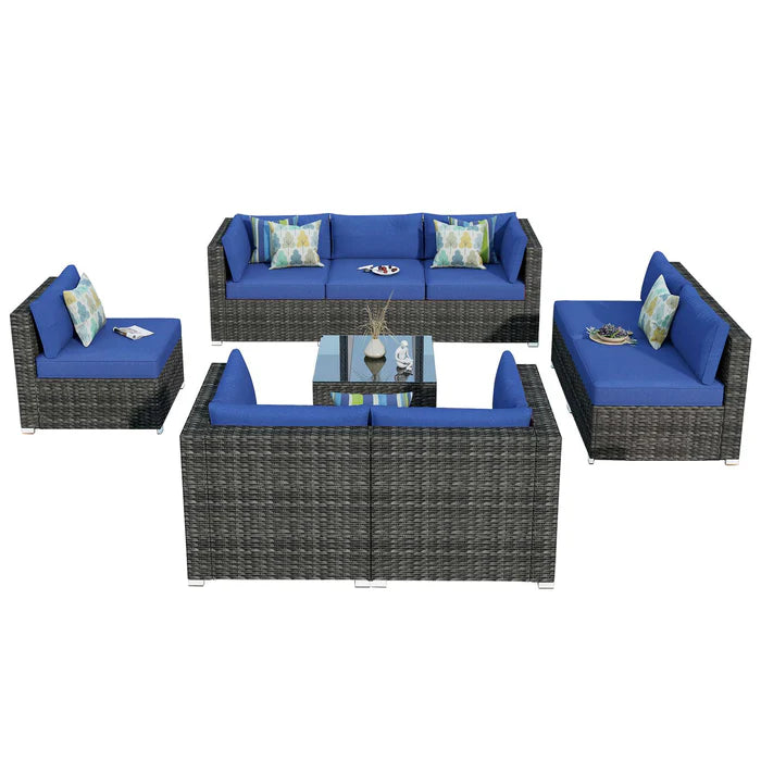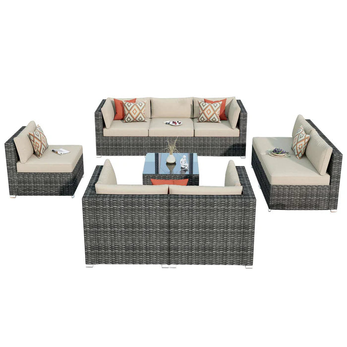 Outdoor Sectional Furniture 9-Piece with Cushions and Table