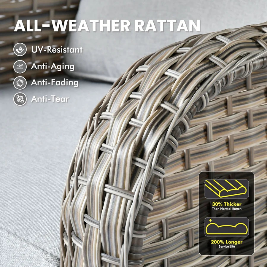 Sturdy & Practical Design:Cozy yet modern experience with spacious armrests and deep seats. Long-lasting wicker guarantees durability, erasing worries of wear over time.