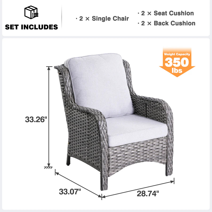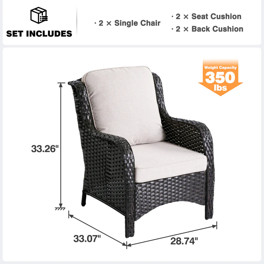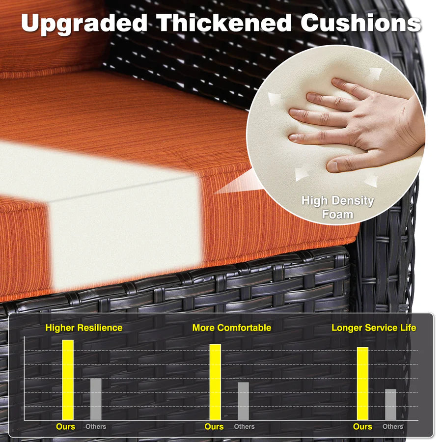 Sturdy & Practical Design:Cozy yet modern experience with spacious armrests and deep seats. Long-lasting wicker guarantees durability, erasing worries of wear over time.