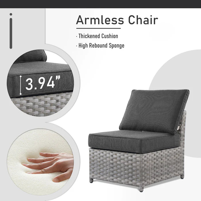 Weather Resistance: The furniture is built to withstand various weather conditions. It offers UV protection and is made with water repellent PE rattan wicker, ensuring durability even in challenging outdoor environments.