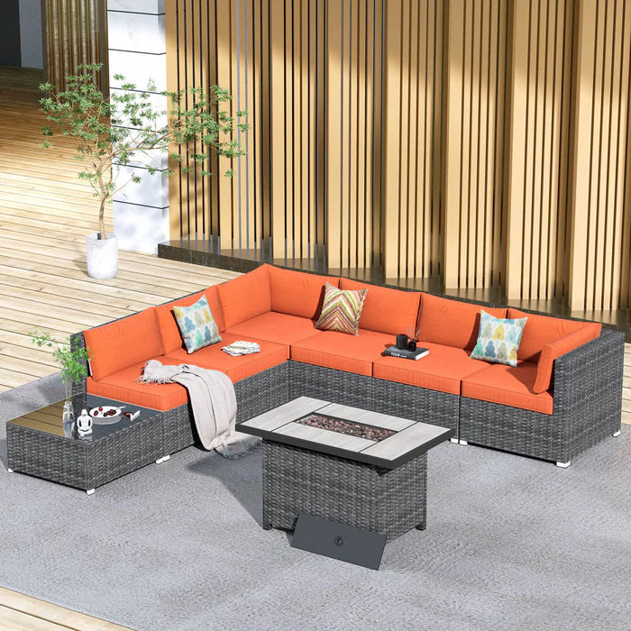 Patio Furniture Set 8-Piece with All Weather Rattan Wicker Sofa and 42.12'' Fire Pit