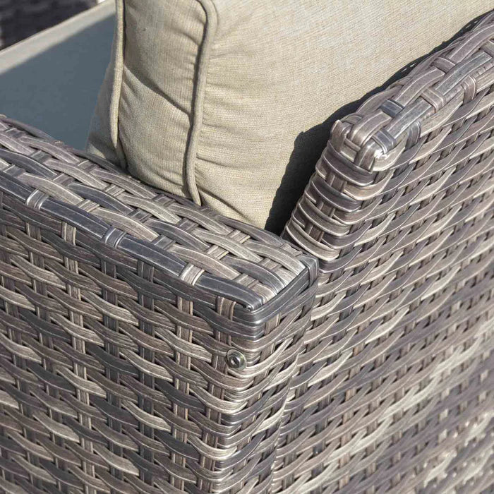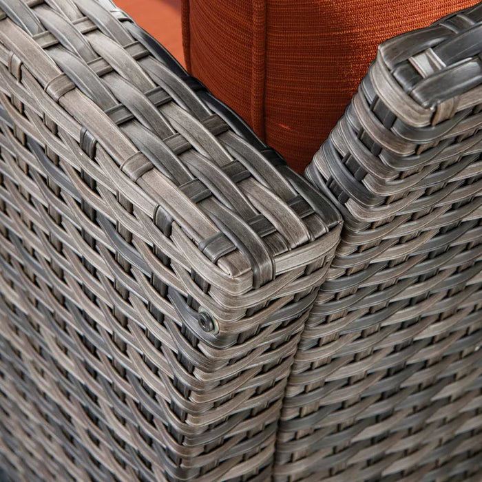 Wicker & Cushion:Immerse in sturdiness with handwoven wicker, paired with high-density cushions providing robust lumbar support. It's the perfect blend of strength and comfort.