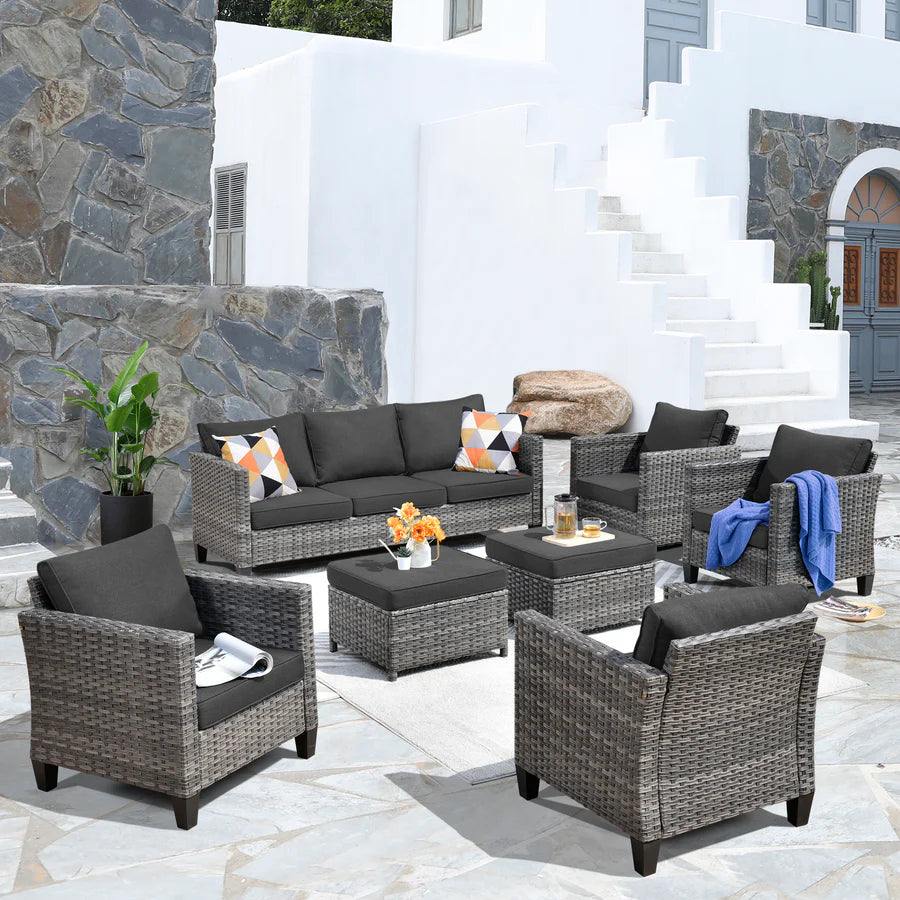 Patio Furniture Set:I Elevate outdoor moments with our expansive sectional sofa, ideal for gatherings of 7 friends. Crafted for versatile placement, it complements any setting seamlessly.