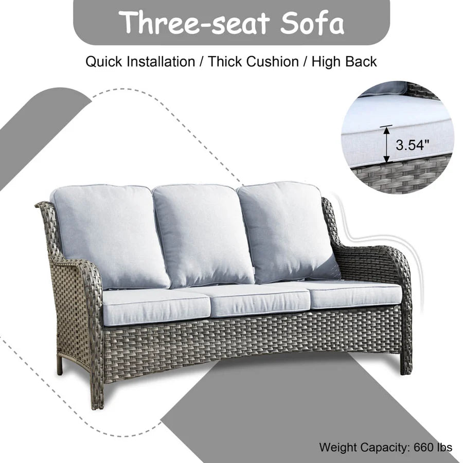Sturdy & Practical Design:Cozy yet modern experience with spacious armrests and deep seats. Long-lasting wicker guarantees durability, erasing worries of wear over time.