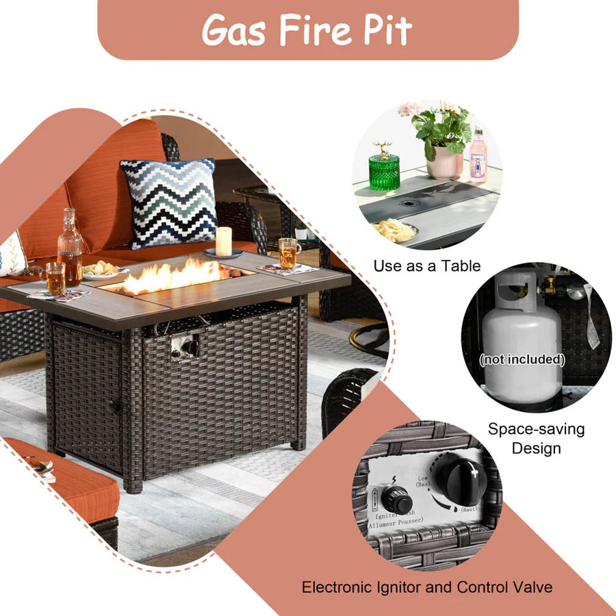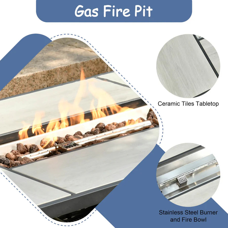 Safety Assurance:Certified at 50,000 BTU, the fire pit table includes a safety valve for worry-free use. Propane-powered, it guarantees stable and eco-friendly burning, freeing you from ash and smoke concerns.