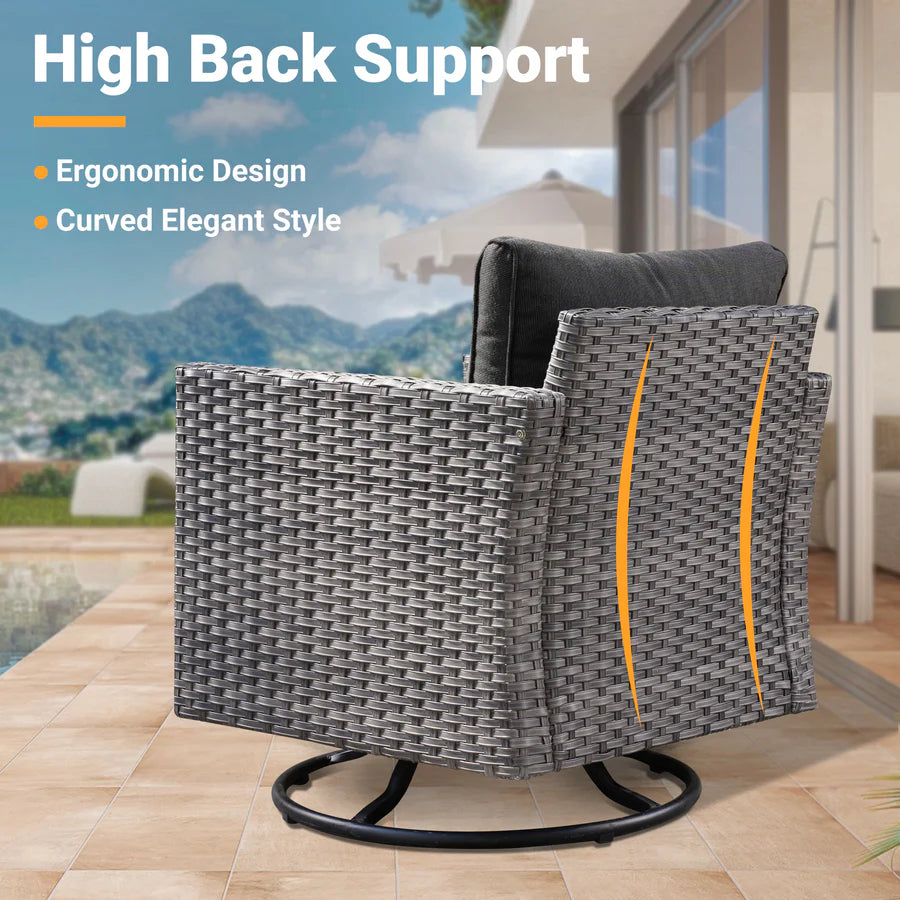 Items Included | 7 PCS include: Fire Pit Table*1,Sofa*1, Swivel Chair*2, Ottoman*2, Side Table*1 |
