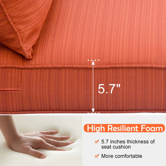 High Resilient Outdoor Seat Cushion: It is featured by a high resilient poly-wrapped foam with density of 21" and thickness of 5.5". It is not compressed to keep in good shape.