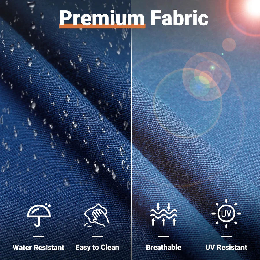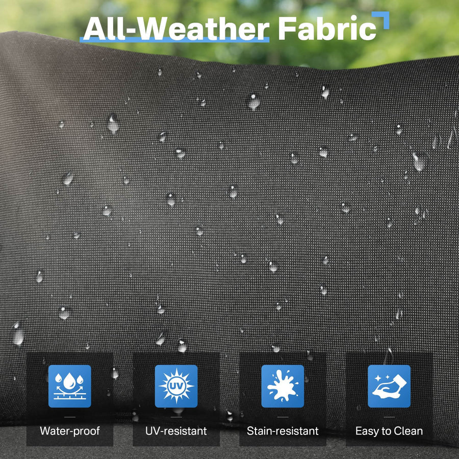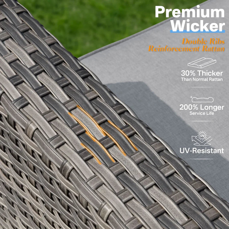 Premium Materials: Enjoy the durability of high-quality fabric with unmatched UV protection, ensuring rapid drying after rain. The handwoven wicker and high-density cushions offer robust lumbar support.